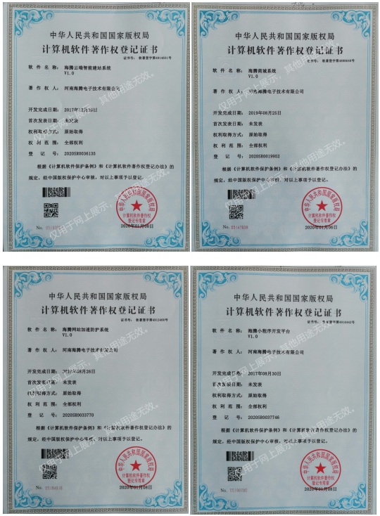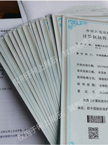 海騰于近日取得由版權(quán)局頒發(fā)的計算機軟件著作權(quán)證書,分別是:海騰云端智能建站系統(tǒng)V1.0、海騰商城系統(tǒng)V1.0、海騰小程序開發(fā)平臺V1.0、海騰服務(wù)器監(jiān)測系統(tǒng)V1.0、海騰網(wǎng)站加速防護系統(tǒng)V1.0、海騰域名注冊系統(tǒng)V1.0、海騰云服務(wù)器平臺V1.0、海騰企業(yè)官網(wǎng)系統(tǒng)V1.0等多達十幾項的軟件著作權(quán)證書。