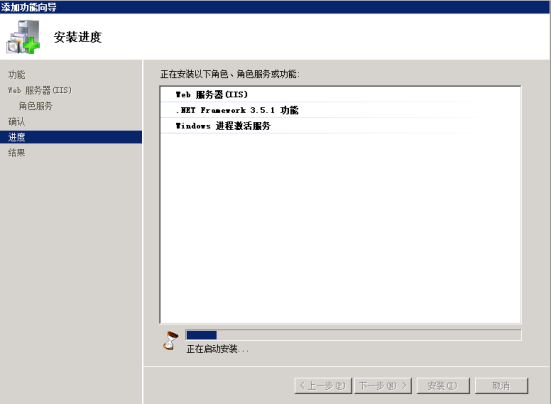 3.繼續(xù)點擊下一步,開始安裝IIS的服務(wù)組件。