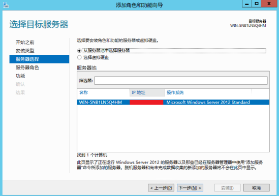 5.選擇從服務器池中選擇服務器,選擇所需要安裝IIS服務的服務器。