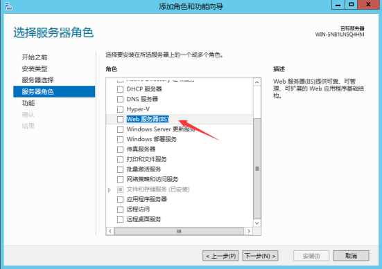 6.在角色選項欄里找到 “Web 服務器(IIS)并勾選”,點擊下一步繼續(xù)安裝。