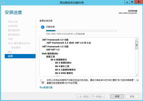 12.開始安裝IIS功能并等待安裝完畢。