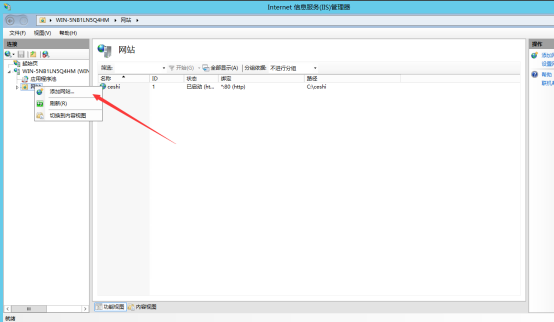 16. 打開“Internet 信息服務(IIS)管理器”,開始創(chuàng)建站點。