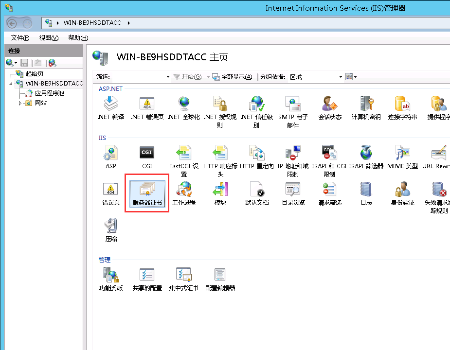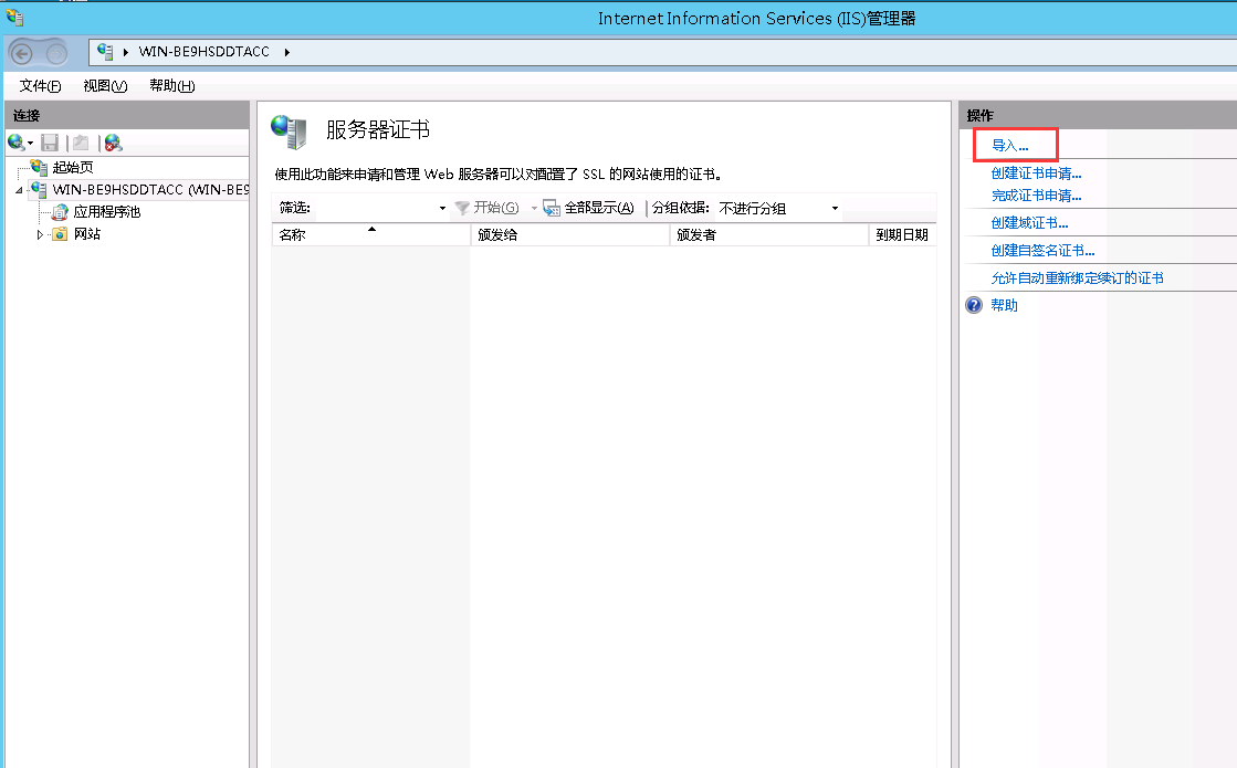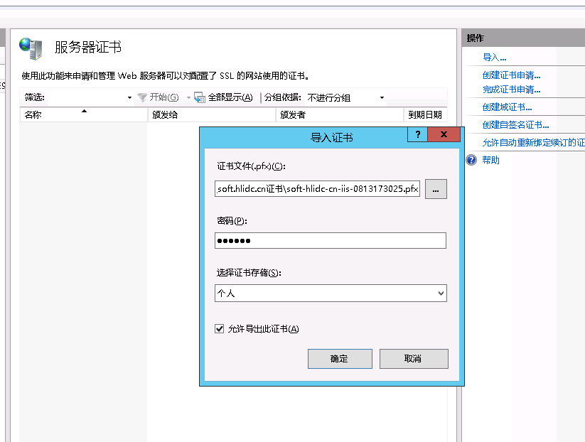 如下圖,證書導(dǎo)入iis7  成功。