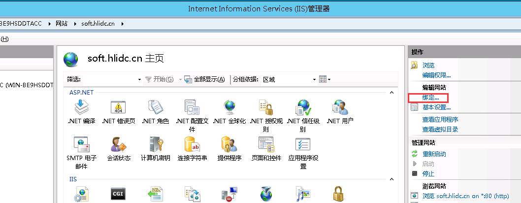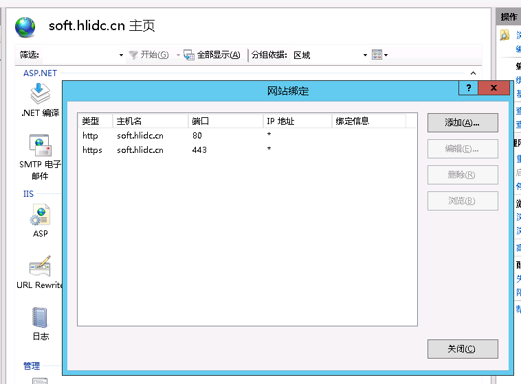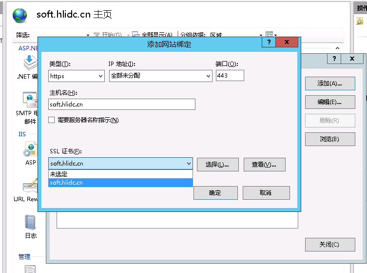 添加添加—— 類型 下拉勾選https , 主機(jī)名稱填寫站點(diǎn)的二級(jí)域名 如 soft.hlidc.cn , SSL 證書下拉勾選“soft.hlidc.cn”這個(gè)證書文件。