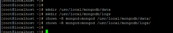 2.3 要?jiǎng)?chuàng)建MongoDB數(shù)據(jù)和日志目錄,默認(rèn)情況下,MongoDB使用mongod用戶(hù)帳戶(hù)運(yùn)行。創(chuàng)建后,將這些目錄的所有者和組設(shè)置為mongod: