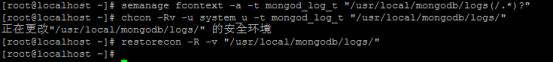分別設(shè)置MongoDB數(shù)據(jù)目錄和MongoDB日志目錄的SELinux安全環(huán)境