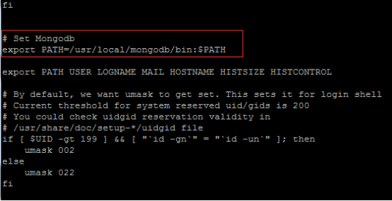 在export PATH USER LOGNAME MAIL HOSTNAME HISTSIZE HISTCONTROL 一行的上面添加如下內(nèi)容: