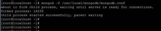 # mongod -f /usr/local/mongodb/mongodb.conf